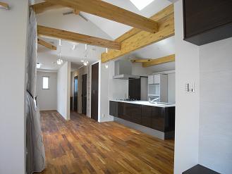 内容:木造2階建新築工事 高断熱仕様(Q値2.28W/㎡k C値1.8c㎡/㎡ 自然温度差3.85℃)